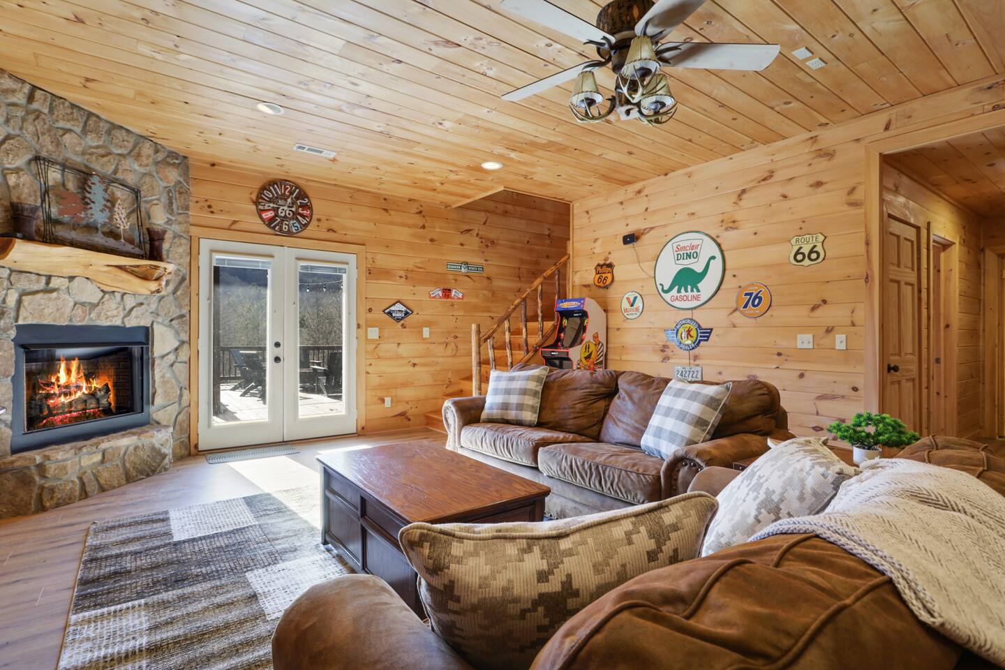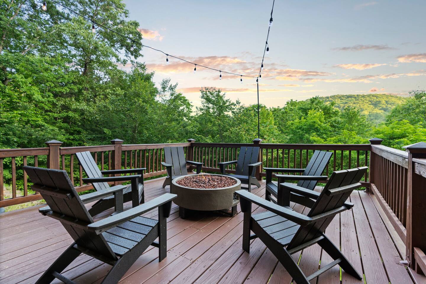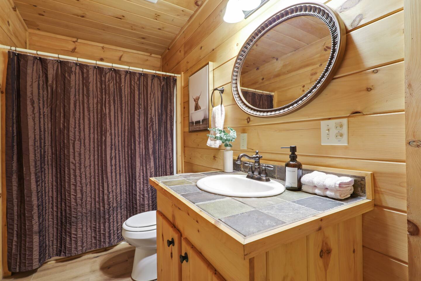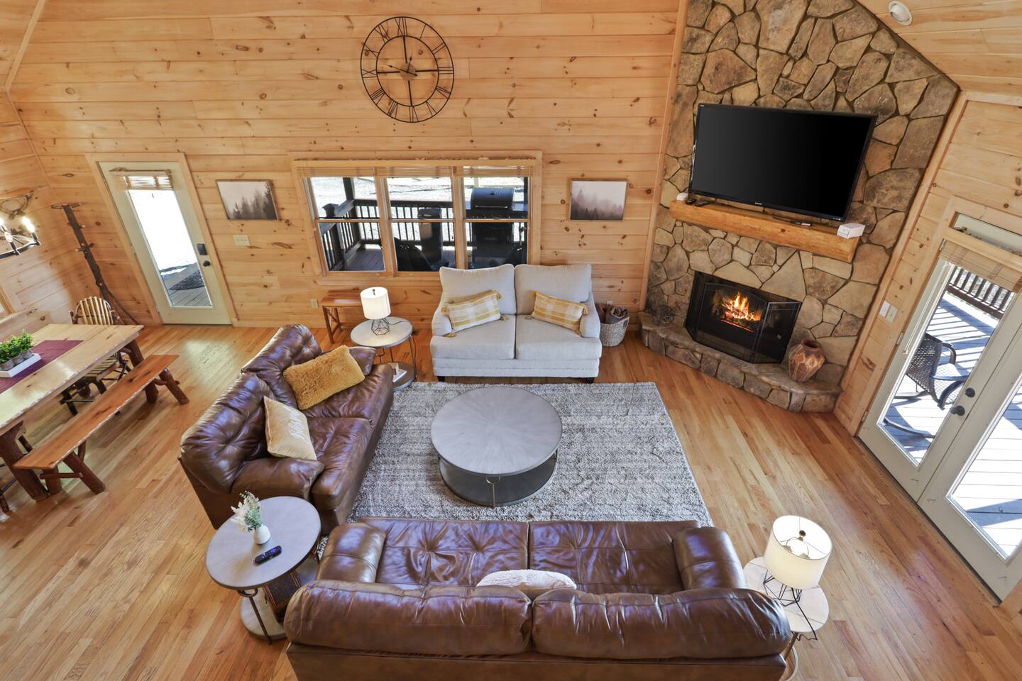 The cabin has three floors and three full bathrooms (one on each floor) stocked with shampoo/conditioner/body wash as well as towels and a hair dryer. The top floor includes two bedrooms, one with a king bed and private porch with seating area overlooking a beautiful view of the mountains, the other with a queen bed. The main floor has one bedroom with walkout to the main deck space that also faces the mountains. In the basement, we have a bunk room that has two bunk beds: one twin over full bunk and one twin over twin bunk. We have two outdoor fire pits: one is wood-burning, and the other is gas-powered. Guests are required to provide their own firewood. However, we are more than happy to coordinate firewood delivery to the property for you upon request. The basement boasts a fooseball table, card table, big screen TV with PlayStation 3 (games included), several board games, and a stand-up arcade game that includes 14 games. It also has access to the bottom deck, which includes a six seat hot tub, gas powered fire pit, and extra seating to take in the views. Fully-stocked kitchen for all your cooking needs. Gas grill with gas line, so you’ll never have to worry about an empty propane tank. Crock pot, two drip coffee makers, one Keurig, blender, food processor, skillet, kid’s plates/cups, and pots/pans/roasting trays aplenty. The cabin is dog-friendly. We have an outdoor dog run that is fenced-in for your furry friend's restroom needs. Additionally, dog bowls, leashes, and poop bags are provided for your use while staying with us. All TVs are equipped with Roku devices that include YouTube TV for your basic cable needs, as well as Netflix, Disney+, Hulu, Amazon Prime, Apple TV+, ESPN+, and Paramount. For the outdoor enthusiasts, take your pick from hiking/biking/kayaking/canoeing to world-class trout fishing-all within a few miles. Less than 3 miles to the beautiful Toccoa Riverside restaurant, Toccoa River tubing, and a family fun center that offers putt putt. Only one mile from the popular hiking trail that ends at a waterfall, Fall Branch Falls. The Benton Mackaye Trail can be accessed within a mile of the property as well. Close proximity to both downtown Blue Ridge and Ellijay. Several wineries nearby. Please note that the road leading up to the property is paved, but is narrow and can be steep in places. While we have not had an issue with sedans, vans, or trucks, we do not recommend traveling to the property with any vehicle that has low clearance (like a sports car).