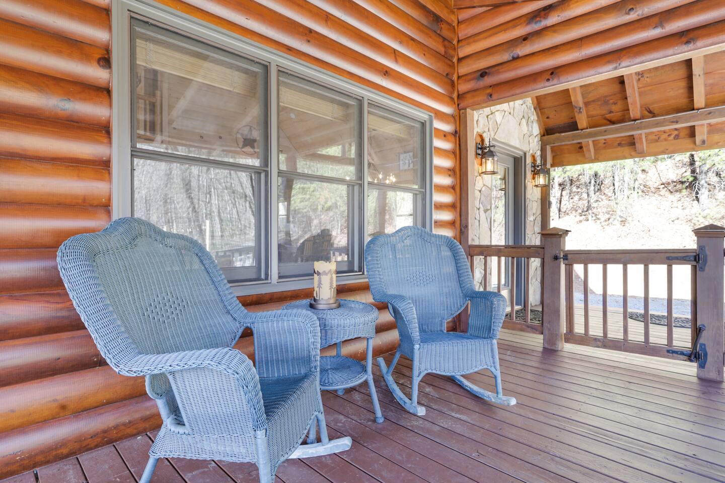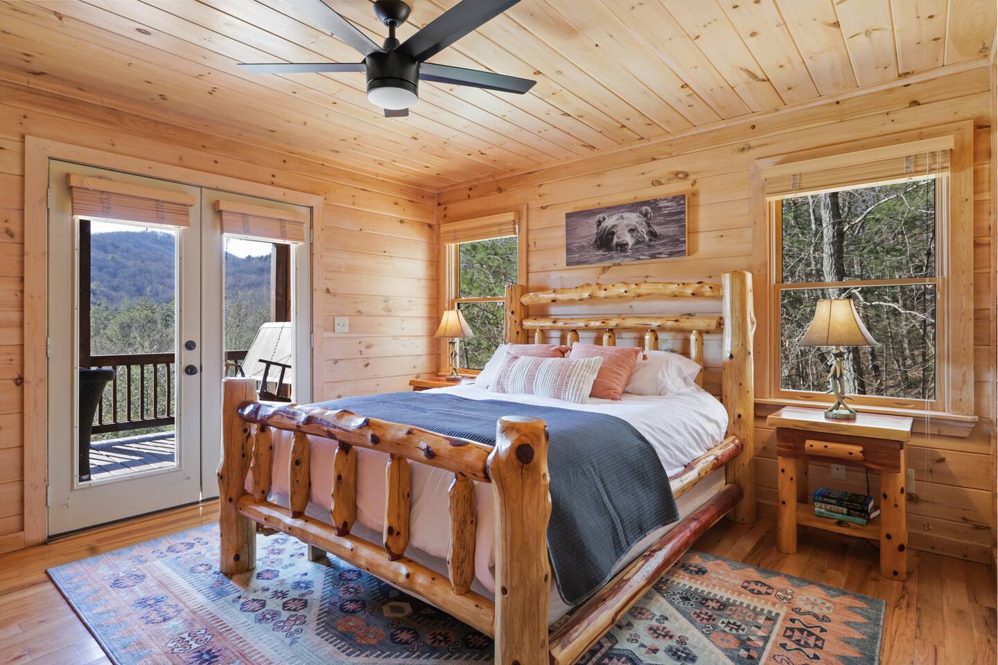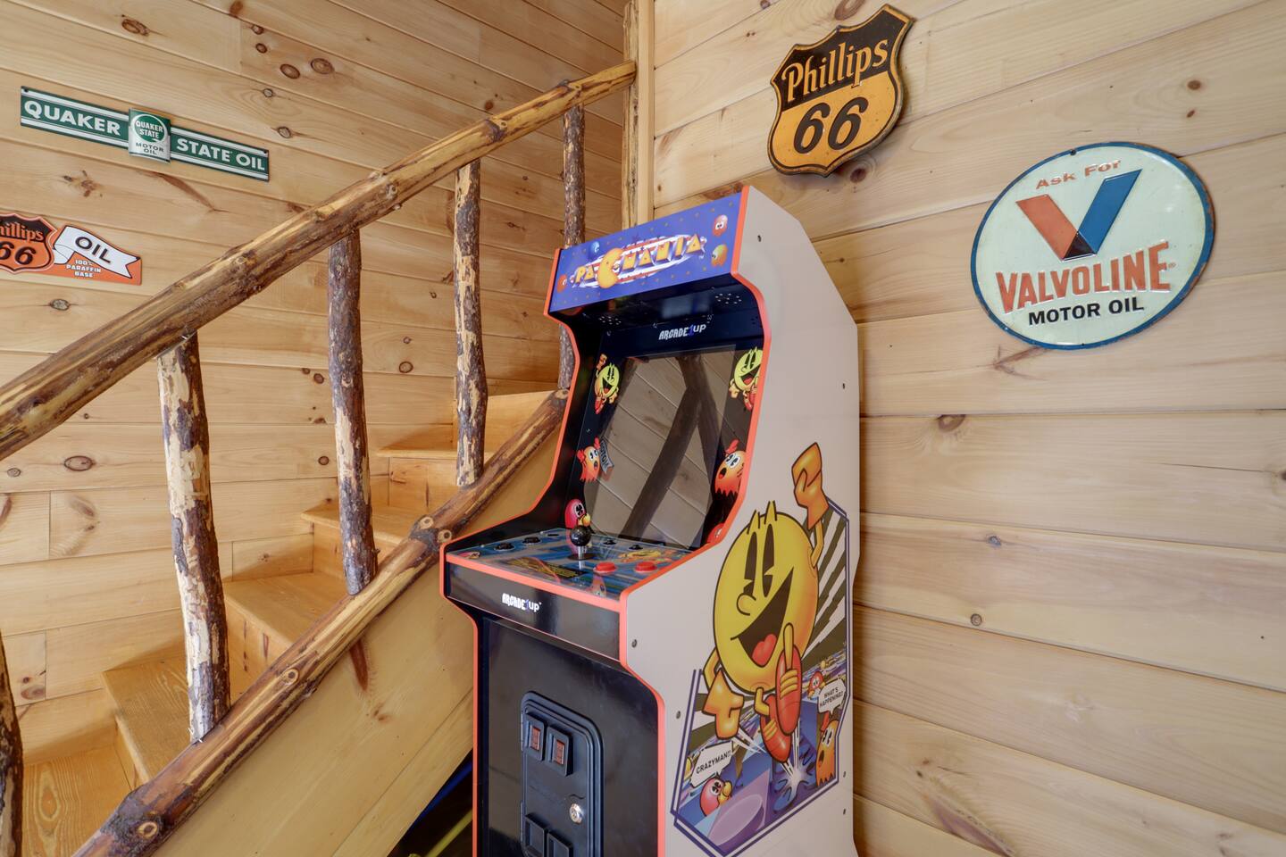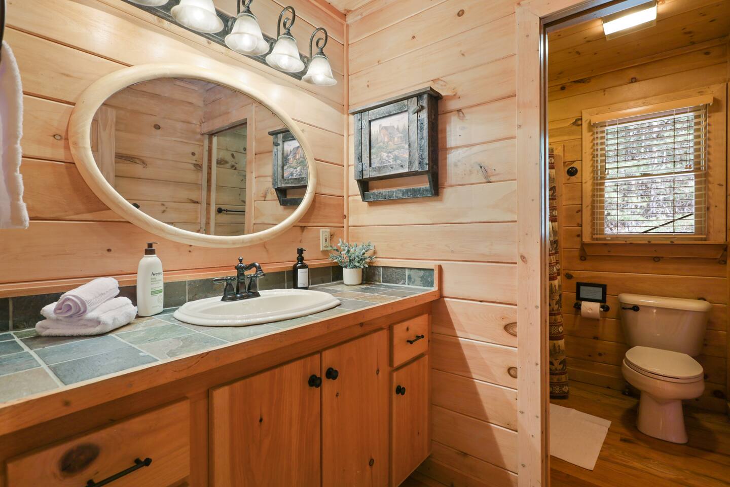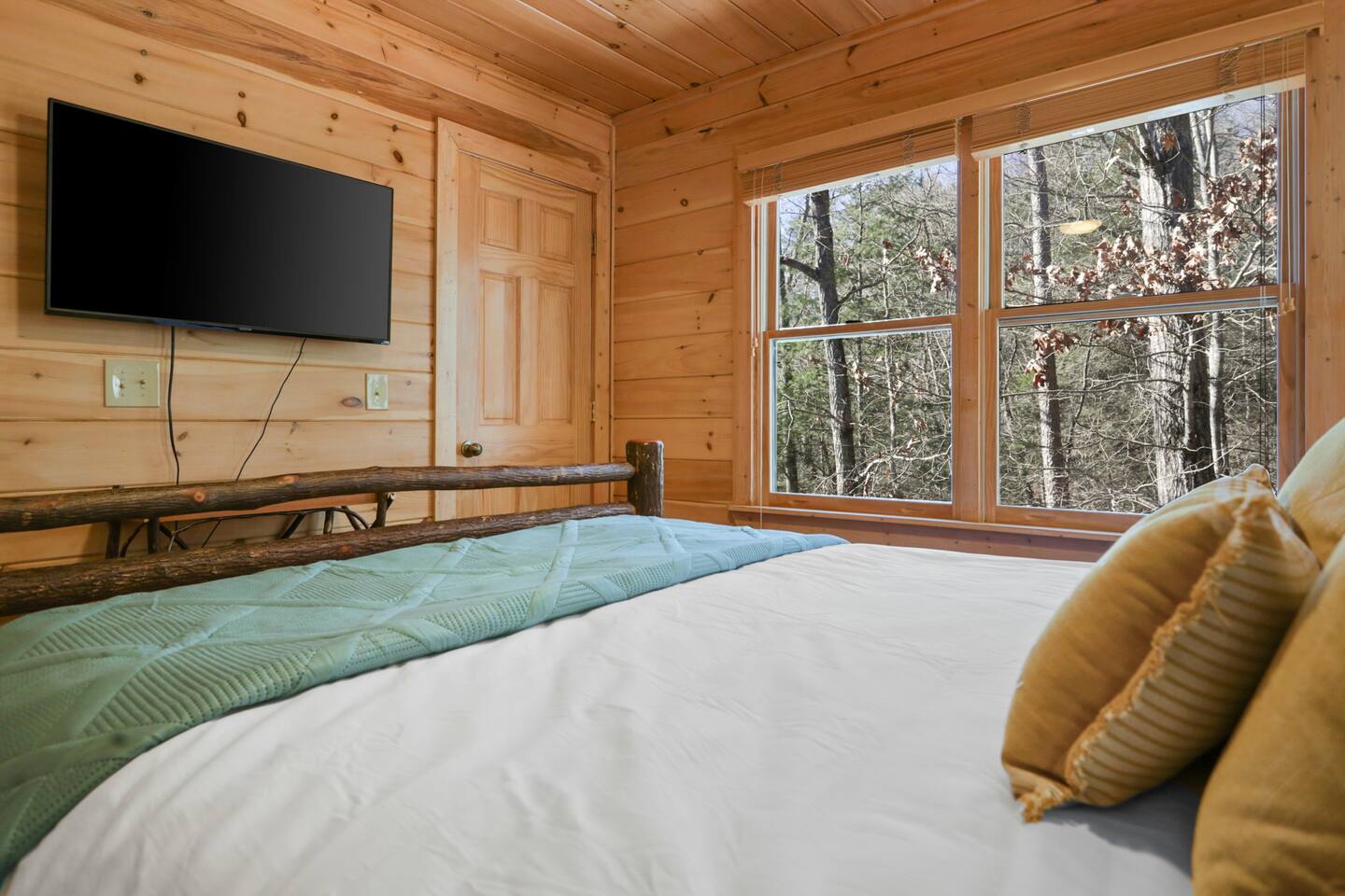 The cabin has three floors and three full bathrooms (one on each floor) stocked with shampoo/conditioner/body wash as well as towels and a hair dryer. The top floor includes two bedrooms, one with a king bed and private porch with seating area overlooking a beautiful view of the mountains, the other with a queen bed. The main floor has one bedroom with walkout to the main deck space that also faces the mountains. In the basement, we have a bunk room that has two bunk beds: one twin over full bunk and one twin over twin bunk. We have two outdoor fire pits: one is wood-burning, and the other is gas-powered. Guests are required to provide their own firewood. However, we are more than happy to coordinate firewood delivery to the property for you upon request. The basement boasts a fooseball table, card table, big screen TV with PlayStation 3 (games included), several board games, and a stand-up arcade game that includes 14 games. It also has access to the bottom deck, which includes a six seat hot tub, gas powered fire pit, and extra seating to take in the views. Fully-stocked kitchen for all your cooking needs. Gas grill with gas line, so you’ll never have to worry about an empty propane tank. Crock pot, two drip coffee makers, one Keurig, blender, food processor, skillet, kid’s plates/cups, and pots/pans/roasting trays aplenty. The cabin is dog-friendly. We have an outdoor dog run that is fenced-in for your furry friend's restroom needs. Additionally, dog bowls, leashes, and poop bags are provided for your use while staying with us. All TVs are equipped with Roku devices that include YouTube TV for your basic cable needs, as well as Netflix, Disney+, Hulu, Amazon Prime, Apple TV+, ESPN+, and Paramount. For the outdoor enthusiasts, take your pick from hiking/biking/kayaking/canoeing to world-class trout fishing-all within a few miles. Less than 3 miles to the beautiful Toccoa Riverside restaurant, Toccoa River tubing, and a family fun center that offers putt putt. Only one mile from the popular hiking trail that ends at a waterfall, Fall Branch Falls. The Benton Mackaye Trail can be accessed within a mile of the property as well. Close proximity to both downtown Blue Ridge and Ellijay. Several wineries nearby. Please note that the road leading up to the property is paved, but is narrow and can be steep in places. While we have not had an issue with sedans, vans, or trucks, we do not recommend traveling to the property with any vehicle that has low clearance (like a sports car).