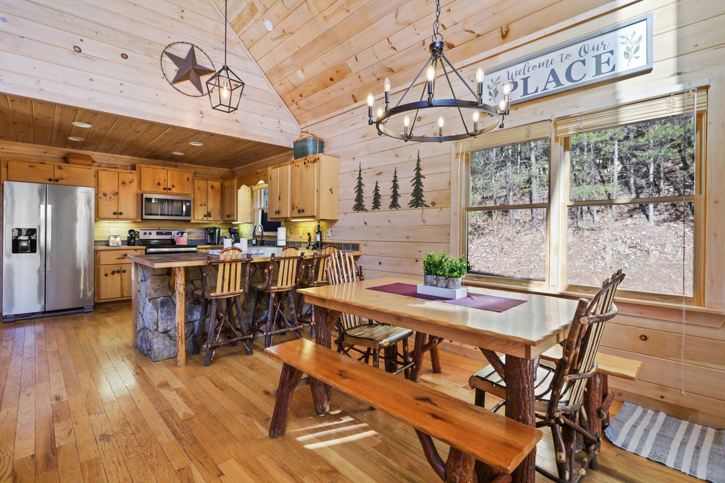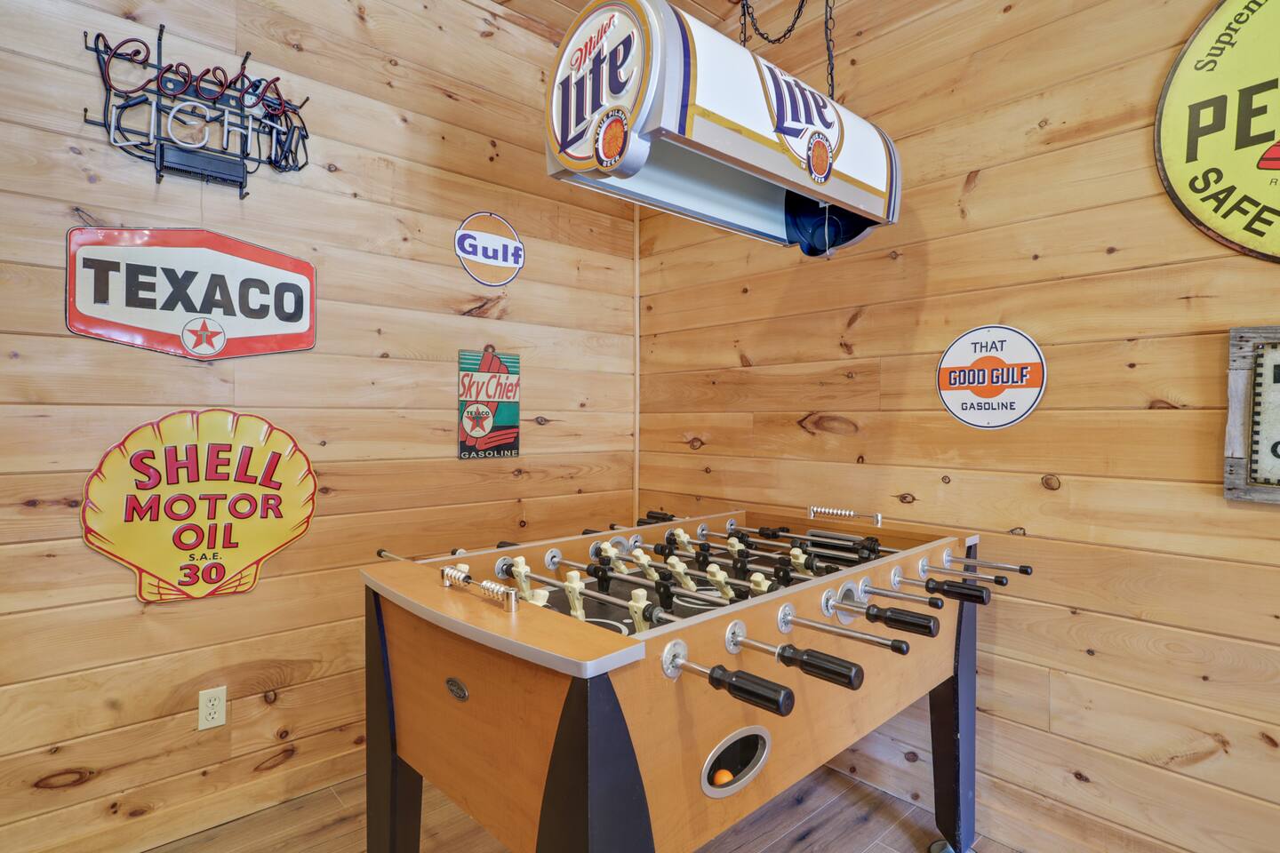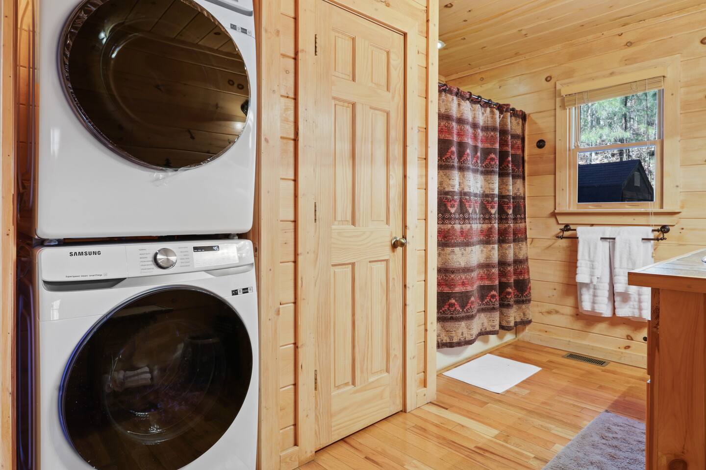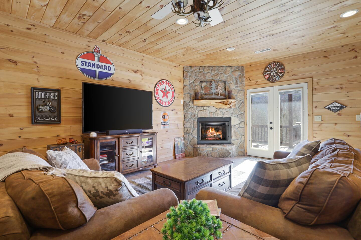 The cabin has three floors and three full bathrooms (one on each floor) stocked with shampoo/conditioner/body wash as well as towels and a hair dryer. The top floor includes two bedrooms, one with a king bed and private porch with seating area overlooking a beautiful view of the mountains, the other with a queen bed. The main floor has one bedroom with walkout to the main deck space that also faces the mountains. In the basement, we have a bunk room that has two bunk beds: one twin over full bunk and one twin over twin bunk. We have two outdoor fire pits: one is wood-burning, and the other is gas-powered. Guests are required to provide their own firewood. However, we are more than happy to coordinate firewood delivery to the property for you upon request. The basement boasts a fooseball table, card table, big screen TV with PlayStation 3 (games included), several board games, and a stand-up arcade game that includes 14 games. It also has access to the bottom deck, which includes a six seat hot tub, gas powered fire pit, and extra seating to take in the views. Fully-stocked kitchen for all your cooking needs. Gas grill with gas line, so you’ll never have to worry about an empty propane tank. Crock pot, two drip coffee makers, one Keurig, blender, food processor, skillet, kid’s plates/cups, and pots/pans/roasting trays aplenty. The cabin is dog-friendly. We have an outdoor dog run that is fenced-in for your furry friend's restroom needs. Additionally, dog bowls, leashes, and poop bags are provided for your use while staying with us. All TVs are equipped with Roku devices that include YouTube TV for your basic cable needs, as well as Netflix, Disney+, Hulu, Amazon Prime, Apple TV+, ESPN+, and Paramount. For the outdoor enthusiasts, take your pick from hiking/biking/kayaking/canoeing to world-class trout fishing-all within a few miles. Less than 3 miles to the beautiful Toccoa Riverside restaurant, Toccoa River tubing, and a family fun center that offers putt putt. Only one mile from the popular hiking trail that ends at a waterfall, Fall Branch Falls. The Benton Mackaye Trail can be accessed within a mile of the property as well. Close proximity to both downtown Blue Ridge and Ellijay. Several wineries nearby. Please note that the road leading up to the property is paved, but is narrow and can be steep in places. While we have not had an issue with sedans, vans, or trucks, we do not recommend traveling to the property with any vehicle that has low clearance (like a sports car).