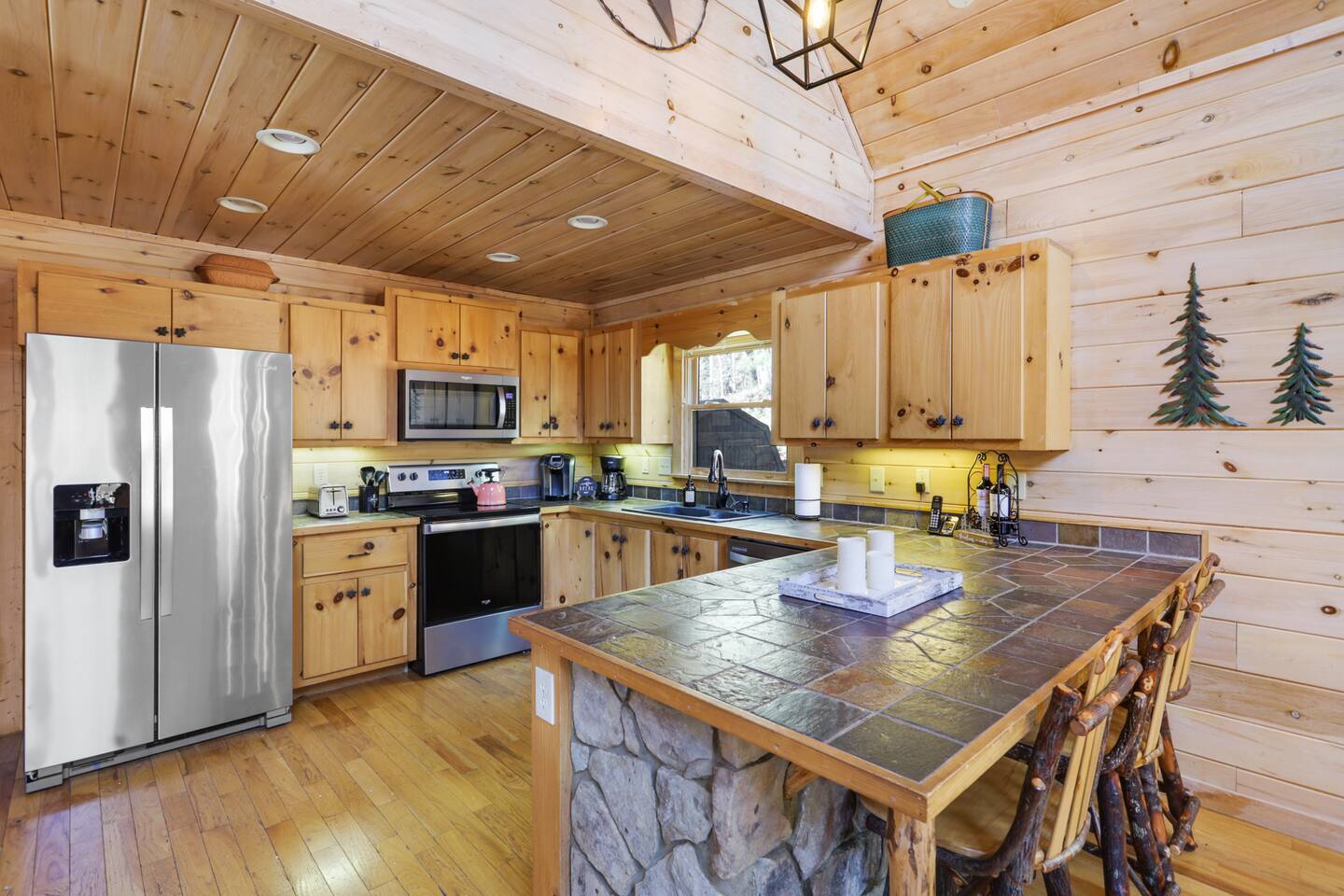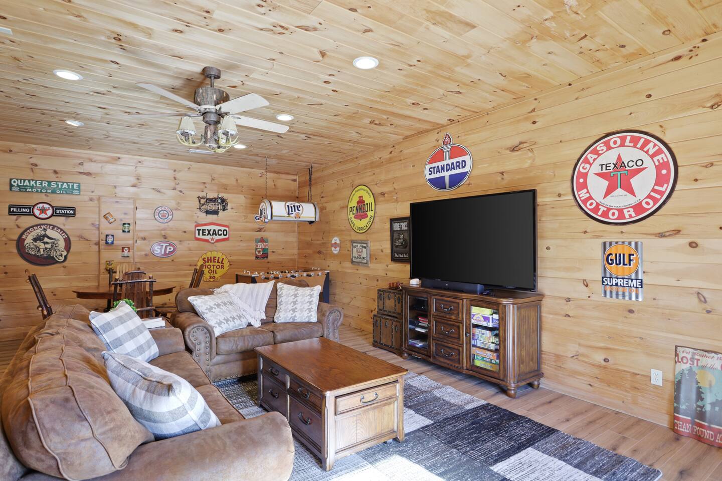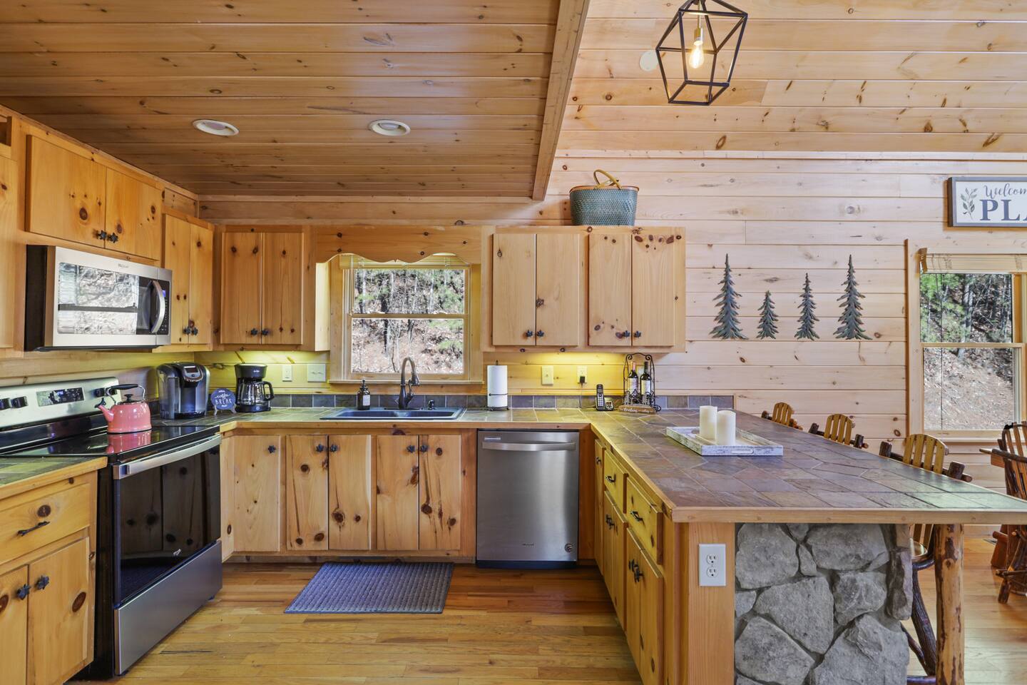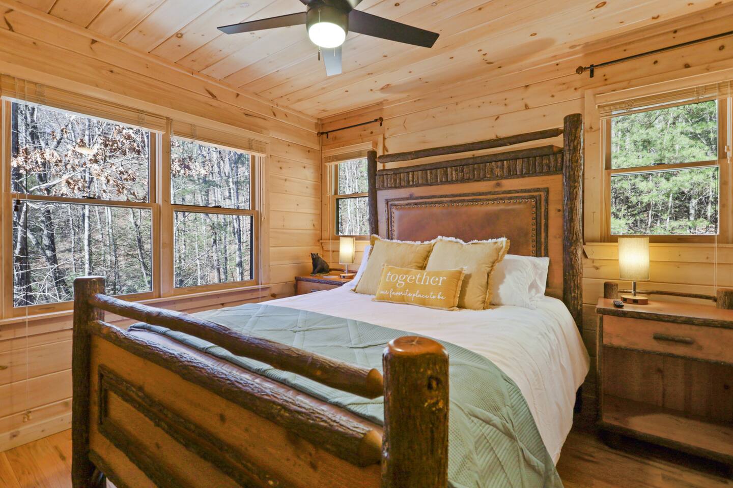 The cabin has three floors and three full bathrooms (one on each floor) stocked with shampoo/conditioner/body wash as well as towels and a hair dryer. The top floor includes two bedrooms, one with a king bed and private porch with seating area overlooking a beautiful view of the mountains, the other with a queen bed. The main floor has one bedroom with walkout to the main deck space that also faces the mountains. In the basement, we have a bunk room that has two bunk beds: one twin over full bunk and one twin over twin bunk. We have two outdoor fire pits: one is wood-burning, and the other is gas-powered. Guests are required to provide their own firewood. However, we are more than happy to coordinate firewood delivery to the property for you upon request. The basement boasts a fooseball table, card table, big screen TV with PlayStation 3 (games included), several board games, and a stand-up arcade game that includes 14 games. It also has access to the bottom deck, which includes a six seat hot tub, gas powered fire pit, and extra seating to take in the views. Fully-stocked kitchen for all your cooking needs. Gas grill with gas line, so you’ll never have to worry about an empty propane tank. Crock pot, two drip coffee makers, one Keurig, blender, food processor, skillet, kid’s plates/cups, and pots/pans/roasting trays aplenty. The cabin is dog-friendly. We have an outdoor dog run that is fenced-in for your furry friend's restroom needs. Additionally, dog bowls, leashes, and poop bags are provided for your use while staying with us. All TVs are equipped with Roku devices that include YouTube TV for your basic cable needs, as well as Netflix, Disney+, Hulu, Amazon Prime, Apple TV+, ESPN+, and Paramount. For the outdoor enthusiasts, take your pick from hiking/biking/kayaking/canoeing to world-class trout fishing-all within a few miles. Less than 3 miles to the beautiful Toccoa Riverside restaurant, Toccoa River tubing, and a family fun center that offers putt putt. Only one mile from the popular hiking trail that ends at a waterfall, Fall Branch Falls. The Benton Mackaye Trail can be accessed within a mile of the property as well. Close proximity to both downtown Blue Ridge and Ellijay. Several wineries nearby. Please note that the road leading up to the property is paved, but is narrow and can be steep in places. While we have not had an issue with sedans, vans, or trucks, we do not recommend traveling to the property with any vehicle that has low clearance (like a sports car).